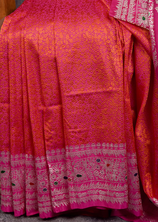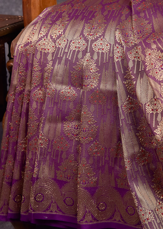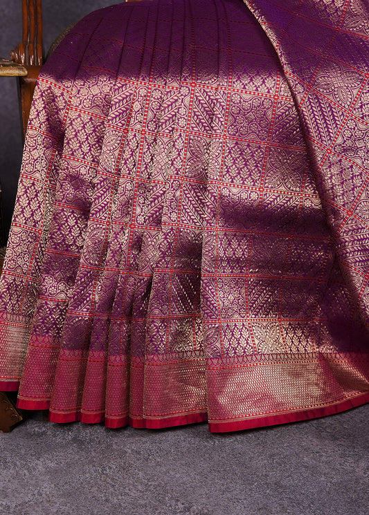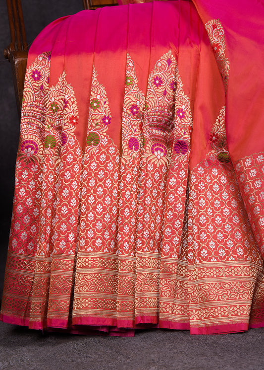 Shades of Taupe with Deep Red Pure Silk Kora Banarasi Saree