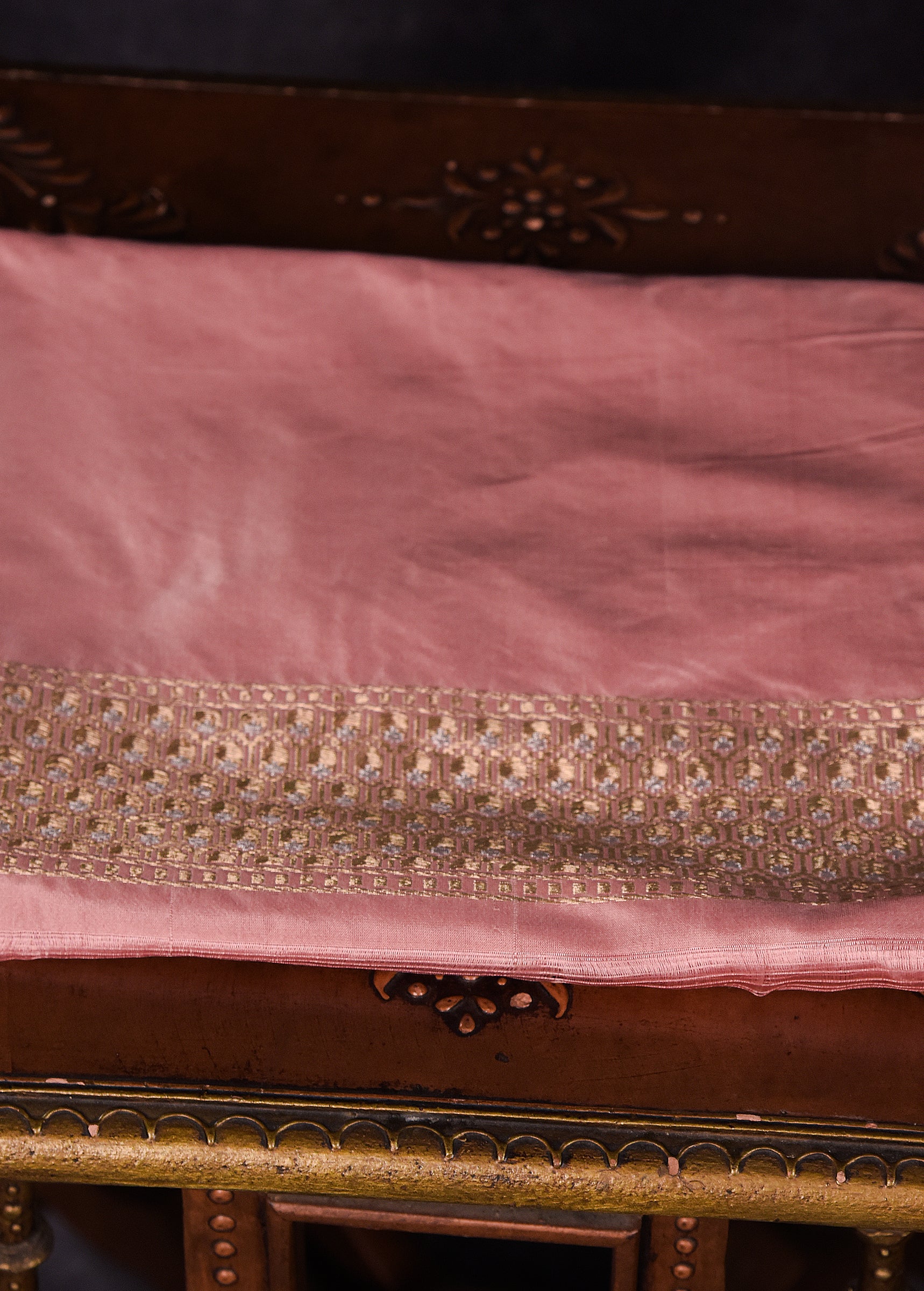 Peach Pink Pure Silk Katan Banarasi Saree