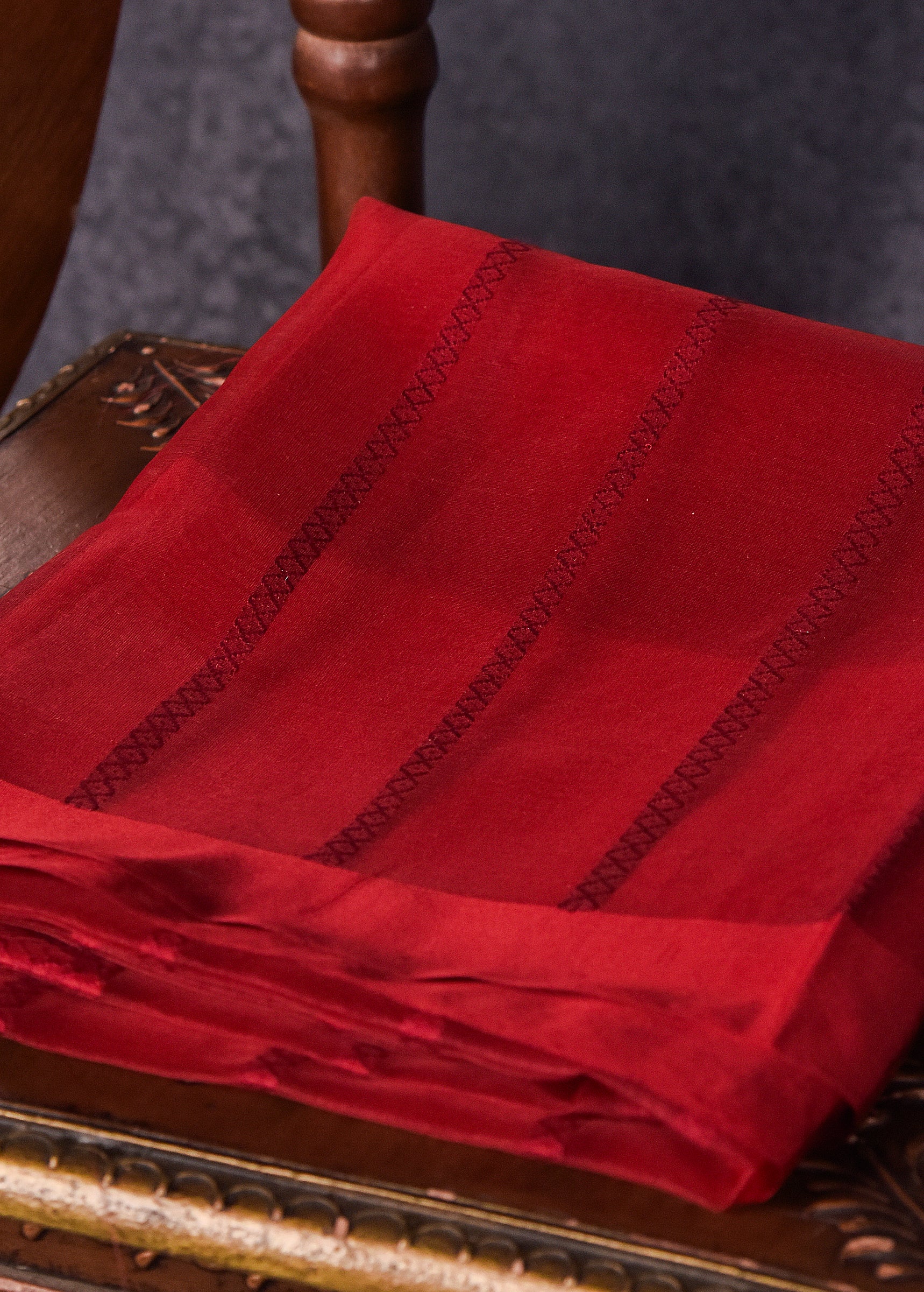 A stunning Kadwa pure silk Kora Banarasi, featuring a body in rich shades of brown that lends a contemporary edge, framed by a delicate thread-woven border and a zari palla. Subtle red meenakari highlights throughout add depth, creating a perfect blend of modern sophistication and traditional charm.